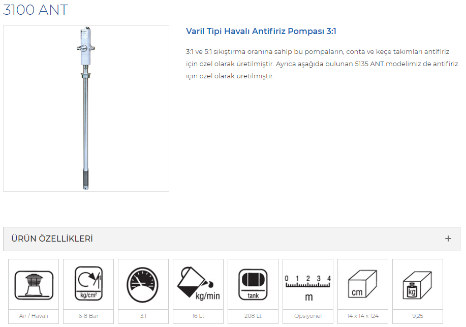 3100 ANT VARİL TİPİ HAVALI ANTİFRİZ POMPASI