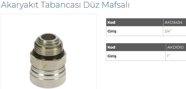 AKD3434 – AKD1010 AKARYAKIT TABANCASI DÜZ MAFSALI