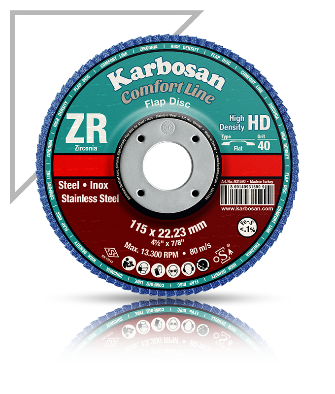 Karbosan Comfort Line ZR High Density Flap Diskler çelik ve paslanmaz çelik (Inox) malzemelerin kaynak yüksekliğini alma, çapak alma ve yüzey düzeltmesi için uygundur.