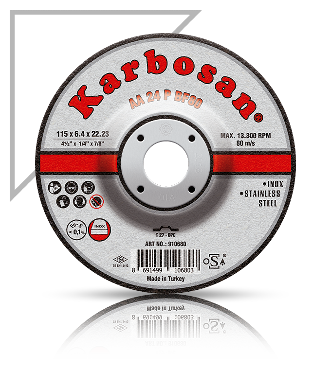 Karbosan inox çapakalma diskleri bazı paslanmaz özellikli çelik alaşımlarının taşlama ve çapakalma işlemleri için özel olarak üretilmiştir. İçerdiği aşındırıcı daha özel bir alüminyum oksit aşındırıcıdır.